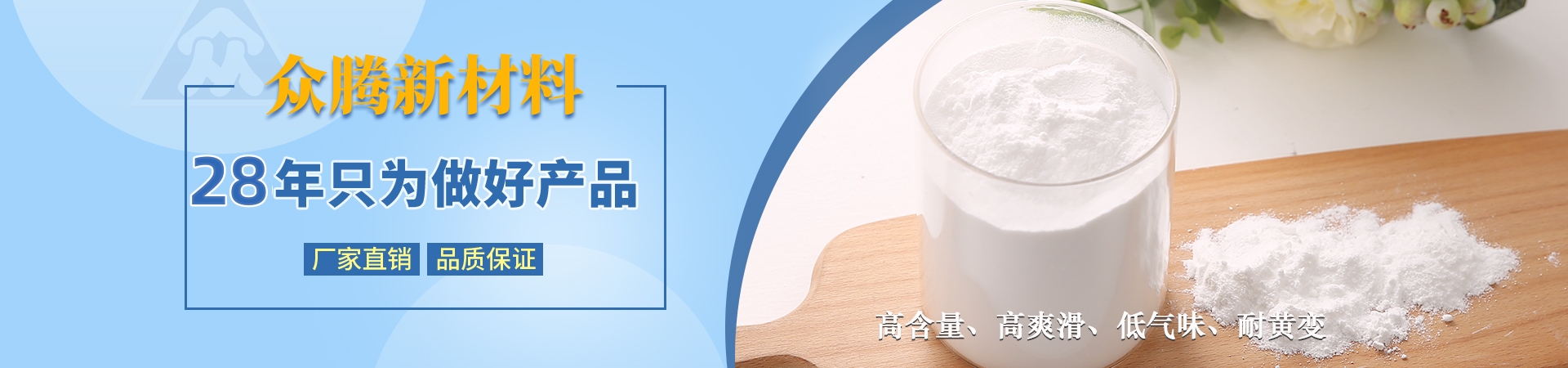 南通海門眾騰新材料科技有限公司與德國ZOTN公司合作,始建于1995年,地處長江三角洲與國際大都市上海隔江相望,座落于江蘇省南通市海門區(qū)。公司固定資產(chǎn)2000萬元,具備先進(jìn)、齊全的科研設(shè)施,擁有一批已積累多年開發(fā)、技術(shù)應(yīng)用經(jīng)驗(yàn)的專業(yè)技術(shù)人員,同類產(chǎn)品采用目前國際先進(jìn)的自動控制裝置。產(chǎn)品主要有芥酸酰胺、硬脂基芥酸酰胺、油酸酰胺、硬脂酸酰胺、塑料光亮劑、塑料抗靜電劑、EBS、EBO、開口劑等,廣泛應(yīng)用于生物降解材料、母料、塑料、吹膜、PE粉末涂料、 油墨等行業(yè),年銷售量3000噸,出口量占60%。公司產(chǎn)品均已通過SGS綠色環(huán)保檢測,符合歐盟ROHS環(huán)保指令,并達(dá)食品、醫(yī)藥級要求。忠誠合作,和諧創(chuàng)造!讓我們攜手并進(jìn),共創(chuàng)美好明天!